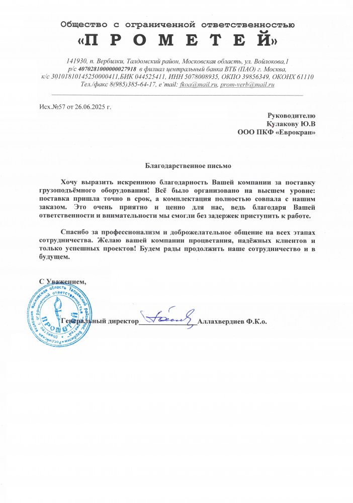 ООО «ПРОМЕТЕЙ» (Кран-балки)